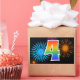 Fun Fireworks + Rainbow Pattern "4" Event Number Rectangular Sticker
