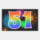 Fun Fireworks + Rainbow Pattern "51" Event Number Rectangular Sticker