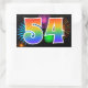 Fun Fireworks + Rainbow Pattern "54" Event Number Rectangular Sticker