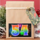 This fun, vibrant sticker design features a colorful pattern inspired by celebratory fireworks, along with the number "54" having a multicolored rainbow inspired gradient pattern, on a black colored background. Stickers like this might be used at a party celebrating somebody’s fifty fourth birthday, or perhaps for a couple’s fifty fourth wedding anniversary, or some other 54th event. [~Z0000324]