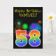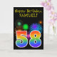 Fun Fireworks + Rainbow Pattern "58" Birthday # Card