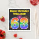 This fun, vibrant paper napkin design features a colorful pattern inspired by celebratory fireworks, along with the number "63" featuring a multicolored rainbow inspired gradient pattern, on a black colored background. It also features a personalized name and event message. Paper napkins like this could perhaps be used at a party being held to celebrate somebody’s sixty third birthday. [~Z0000326]