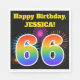 This fun, vibrant paper napkin design features a colorful pattern inspired by celebratory fireworks, along with the number "66" having a multicolored rainbow inspired gradient pattern, on a black colored background. It also features a custom name and event message. Paper napkins like this might be used at a party being held to celebrate somebody’s sixty sixth birthday. [~Z0000326]