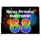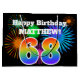 This fun, vibrant gift bag design features a colorful pattern inspired by celebratory fireworks, along with the number "68" having a multicolored rainbow like gradient pattern, on a black colored background. It also features a personalized name and event message, such as a birthday greeting. A fun gift bag like this could be used when wrapping a present or gift being given in celebration of somebody’s sixty eighth birthday. [~Z0000328]