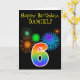 Fun Fireworks + Rainbow Pattern "6" Birthday # Card