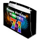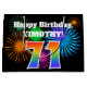 This fun, vibrant gift bag design features a colorful pattern inspired by celebratory fireworks, along with the number "71" having a multicolored rainbow inspired gradient pattern, on a black colored background. It also features a personalized name and event message, such as a birthday greeting. A gift bag like this might be used to wrap a present or gift being given in celebration of somebody’s seventy first birthday. [~Z0000328]