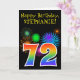 Fun Fireworks + Rainbow Pattern "72" Birthday # Card