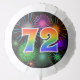 This fun, vibrant balloon design features a colorful bursting celebratory fireworks inspired pattern, along with the number "72" having a multicolored rainbow like spectrum or gradient pattern. A balloon like this might be a fun decoration to have at a party being held to celebrate somebody’s seventy second birthday, or perhaps a couple’s seventy second wedding anniversary, or some other 72nd event. [~Z0000339]