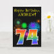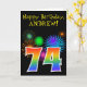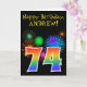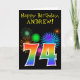 Fun Fireworks + Rainbow Pattern "74" Birthday # Card