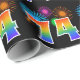 This fun, vibrant wrapping paper design features a colorful celebratory fireworks inspired pattern, along with the number "74" featuring a multicolored rainbow inspired gradient pattern, on a black colored background. Wrapping paper like this could perhaps be used when wrapping presents or gifts being given for somebody’s seventy fourth birthday, or perhaps for a couple’s seventy fourth wedding anniversary, or some other 74th event. [~Z0000322]