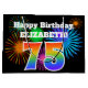 This fun, vibrant gift bag design features a colorful celebratory fireworks inspired pattern, along with the number "75" having a multicolored rainbow like gradient pattern, on a black colored background. It also features a custom name and event message, such as a birthday greeting. A fun gift bag like this could be used when wrapping a present or gift being given in celebration of somebody’s seventy fifth birthday. [~Z0000328]