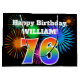 This fun, vibrant gift bag design features a colorful pattern inspired by celebratory fireworks, along with the number "76" featuring a multicolored rainbow like gradient pattern, on a black colored background. It also features a custom name and event message, such as a birthday greeting. A fun gift bag like this could be used when wrapping a present or gift being given in celebration of somebody’s seventy sixth birthday. [~Z0000328]