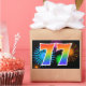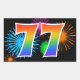 Fun Fireworks + Rainbow Pattern "77" Event Number Rectangular Sticker