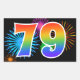 Fun Fireworks + Rainbow Pattern "79" Event Number Rectangular Sticker