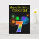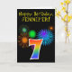 Fun Fireworks + Rainbow Pattern "7" Birthday # Card