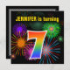 Fun Fireworks + Rainbow Pattern "7" Birthday # Invitation