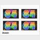 This fun, vibrant sticker design features a colorful celebratory fireworks inspired pattern, along with the number "84" having a multicolored rainbow like gradient pattern, on a black colored background. Stickers like this might be given as a small gift while celebrating somebody’s eighty fourth birthday, or perhaps for a couple’s eighty fourth wedding anniversary, or some other 84th event. [~Z0000324]