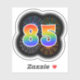 This fun, exciting sticker design features a colorful pattern inspired by bursting celebratory fireworks, along with the number "85" having a multicolored rainbow inspired spectrum or gradient pattern. A sticker like this might be fun to use when celebrating somebody’s eighty fifth birthday, or perhaps a couple’s eighty fifth wedding anniversary, or some other 85th event. [~Z0000362]