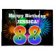 This fun, vibrant gift bag design features a colorful celebratory fireworks inspired pattern, along with the number "88" having a multicolored rainbow like gradient pattern, on a black colored background. It also features a customizable name and event message, such as a birthday greeting. A colorful and joyful gift bag like this might be used when giving a gift or present to somebody who is celebrating their eighty eighth birthday. [~Z0000328]