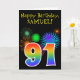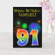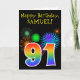 Fun Fireworks + Rainbow Pattern "91" Birthday # Card
