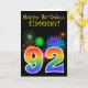 Fun Fireworks + Rainbow Pattern "92" Birthday # Card