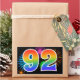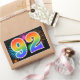This fun, vibrant sticker design features a colorful celebratory fireworks inspired pattern, along with the number "92" featuring a multicolored rainbow inspired gradient pattern, on a black colored background. Stickers like this could perhaps be given as a small gift while celebrating somebody’s ninety second birthday, or perhaps for a couple’s ninety second wedding anniversary, or some other 92nd event. [~Z0000324]