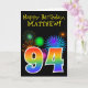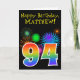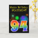 Fun Fireworks + Rainbow Pattern "94" Birthday # Card