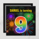 Fun Fireworks + Rainbow Pattern "9" Birthday # Invitation