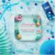 These plates capture the essence of a tropical paradise with their bright pink flamingos standing amid a sea of turquoise hues. The design is complemented by golden pineapples and pink blossoms, creating a festive atmosphere for any poolside feast.