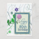 Bright white background with colorful green, blue and pink flowers with Happy 80th Birthday in blue text. Perfect design for the 80th birthday party ... cards, postage, hats, stickers ... make it special!