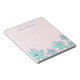 Watercolor flowers in mint green and blue decorate the bottom of this notepad. Easy to customize with your own name! Lined with hand drawn dotted lines. The background color can be customized to any color you'd like.