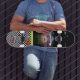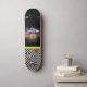 Fun Flying Saucer with Planets skateboard. Shred the streets with this beauty! Retro spaceship and planet print on a black and white check ground along with a convoy of flying saucers invading the beach! Your boarder will love this cool, hip item. Personalize with their name so no one can claim it! Visit BensonHall on Zazzle, for more great designs and items