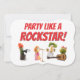 This fun and quirky birthday card features a hilarious vegetable band that's sure to make anyone smile. With a punky gherkin on the keyboard, a curly kale potato on the drums, a cool little lime rocking the guitar, and a fancy orange-haired potato on vocals, this card showcases the craziest, coolest, and most fun band ever! Perfect for music lovers and those with a sense of humor, this card adds an extra level of fun to any birthday celebration. The playful characters combined with the bold "Party Like a Rockstar" message make this a unique card choice for any rockstar in your life.Customize the inside message or leave it blank for a personal handwritten note! Enjoy!