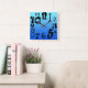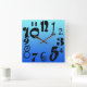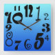 Fun funky numbers - electric blue gradient square wall clock