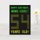 The front of this geeky, personalized birthday card design features the messages "HAPPY BIRTHDAY" and "54 YEARS OLD!", along with a editable recipient name. The messages on the front have a pixelated, vintage computer game style look. The digits of the large number "54" on the front consist of smaller sized "5" or "4" digits, giving an ASCII art inspired look. The inside features a birthday greeting message that can be customized. A nerdy style, customizable birthday greeting card like this might be given to celebrate somebody’s fifty fourth birthday. [~Z0000366]