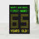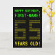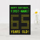 The front of this geeky, editable birthday card design features the messages "HAPPY BIRTHDAY" and "65 YEARS OLD!", along with a customizable recipient name. The messages on the front have a pixelated, old school video game style look. The digits of the large number "65" on the front consist of smaller sized "6" or "5" digits, giving an ASCII art inspired look. The inside features a birthday greeting message that can be customized. A nerdy style, customizable birthday greeting card like this might be a special way to send birthday wishes to somebody celebrating their 65th birthday. [~Z0000366]