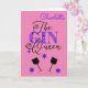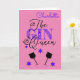 A fun Gin Queen birthday card featuring two black gin glasses surrounded by blue stars, with the wording "The Gin queen" in fancy script with a pale pink background . A fun stylish card to give to Gin lovers ( or anyone really) for any occasion, such as birthdays, or just to say hello. Can be customized by changing the name on the front of the card and the inside can be personalized by amending the event or reason for the card then add your own personal message. A stylish design for any gin lover.