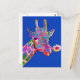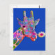 Send a postcard like no other. This pop art design of a colorful giraffe with a sunflower against a blue background is sure to delight everyone on your mailing list.