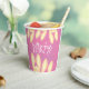 These adorable Birthday and Easter party paper cups feature charming girly bunny ears in light yellow popping up everywhere, set against a pink background with pastel-colored dots in soft blue tones. Perfect for your child’s birthday or Easter celebration, they add a playful touch to any party. The modern white "Party" typography is customizable—replace it with a name or any message to make it uniquely yours!