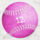 This cute softball birthday party confetti features the realistic image of a softball that has been recolored hot pink with white stitching on the front and back of each confetti piece, upon which you can customize the text - by katz_d_zynes