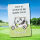The golf towel exceeded my expectations! My husband actually approved of it! He liked the picture quality, thickness and overall usefulness of the golf towel I ordered to commemorate his lowest ever golf score. He liked it so well that I ordered 8 more towels with photos of his home golf course. Each one of the eight has the name of one of his golf group members. I will give them as party favors at my husband's 70th birthday party later this year. The different names were easy to add because the Zazzle template is so very easy to use. The colors were bright and authentic in all 9 of the towels that I made. The one of the 9 that I ordered has come out of the wash and line dry looking great.