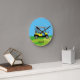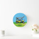 Fun wall clock featuring a yellow golf cart on a green golf course, a golf bag and clubs, and a red flag.