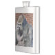 The product is a good size and came exactly as it was pictured. The lid is not attached to the flask, which could be dangerous on drunken nights... The print came out surprisingly well and looks very sharp. Would definitely recommend.