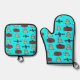 Fun Halloween Print on Blue Oven Mitt & Pot Holder Set