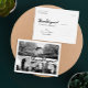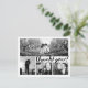 Customize this Stylish Photo Thank You Postcard, designed with modern fun handwrite script bold black text Thank You! on white. Replace the four template image collage with your favorite 4 photos. One of the images is wide horizontal panoramic photo and the other three are smaller. For best results use high resolution photos. Also change all the template information on both sides with your own. This design has a wording: "Thank you for sharing in our special day." You can change the words with your own.