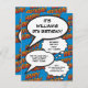 Customise with the name of the birthday girl or boy and all the party details. A fun, blue, cool and trendy retro comic book pop art-inspired birthday invitation that puts the wham, zap, pow into any superhero's birthday celebration event. Designed by ComicBookPop© at www.zazzle.com/comicbookpop*