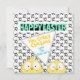 With two cartoon crazy eyed chickens, on a chicken foot print background in front and another two crazy chickens peeking-in on a bright, fun, yellow background on the back, this one is just so much fun!