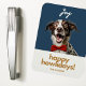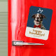 Modern, festive and fun. This christmas howliday flexible magnet features a joyful dog with a red bowtie, a combination of contemporary fonts and custom name text. The front background color is a chic dark blue and the back of the card has an optional text box if you prefer your message printed. Tip: leave the text box empty if you prefer a blank card.