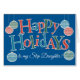 A fun, text-based Happy Holidays card for a Step Daughter, with Ornaments and Lettering, filled with red, blue and green chevrons and polka dots, outline in white on a bright blue background. There is also a custom front card with this design in case you can't find a card for the specific recipient you're looking for.
