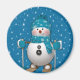 A teal & dark blue snowy star background with a skiing snowman design to match many other fun holiday party products